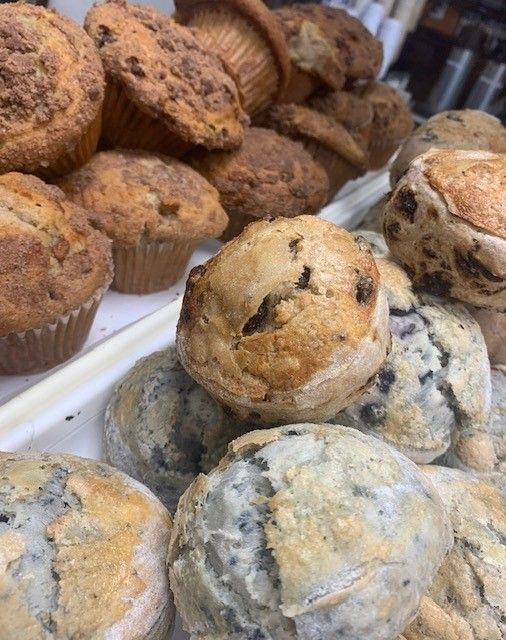 Banana nut, Blueberry, Cholate chip, Double cholate chip, Cinnamon chip, Corn, Cranberry orange, Cranberry walnut, Apple crumb, Blueberry crumb, Cinnamon crumb, Lemon, Pistachio, Poppy, Pumpkin streusel, Raisin bran
